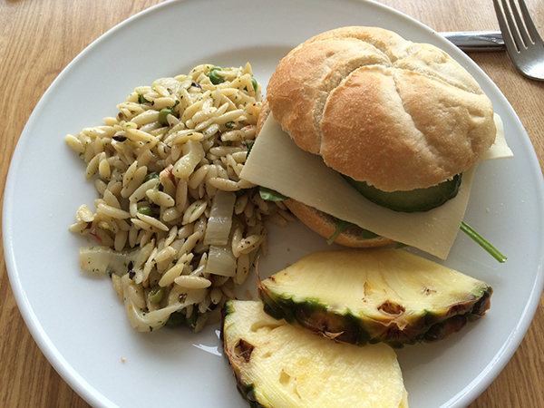 Ik lunch op het werk met orzosalade met venkel en een kaiserbroodje met sla, jong belegen kaas en komkommer. Eenmaal thuis om 16.00 uur eet ik een Stoats haverreep en ga ik aan het werk voor OhMyFoodness. Mijn werk voor de blog bestaat op een dag dat ik in het hotel werk vooral uit mails beantwoorden, foto’s bewerken en artikelen uitwerken.