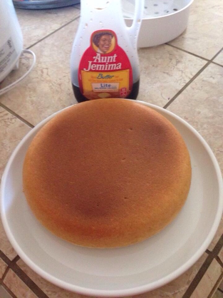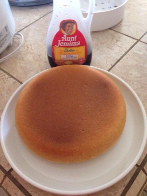 Zo kwam allereerst deze ‘variant’ ons onder ogen: pannenkoekenbeslag in een rijstkoker van deze Reddit-gebruiker. Zo creëer je een grote, dikke pannenkoeken-cake. Hmm…