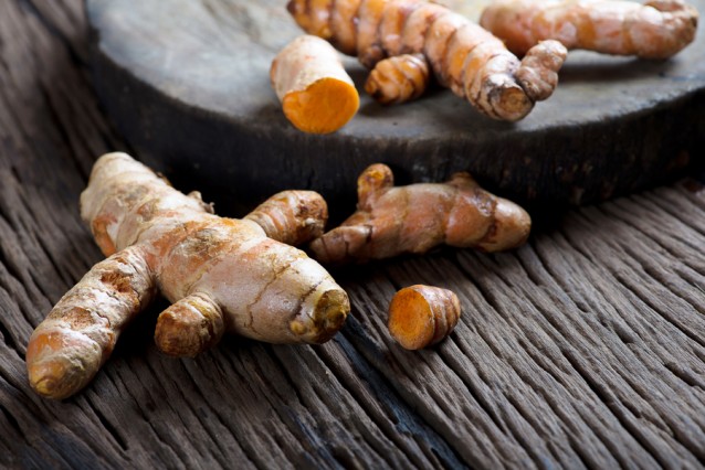 Van buiten lijkt kurkuma op gemberwortel, maar zodra het felgekleurde vruchtvlees tevoorschijn komt zie je gelijk het verschil.