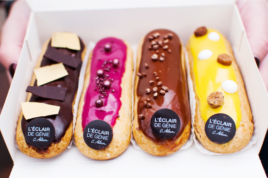De éclairs van L’eclair de genie zijn haast niet aan te slepen zo populair zijn ze, en terecht! Voor gemiddeld 5 euro per éclair kun je je eigen selectie samenstellen. Mijn voorlopige favoriet is de N°66 Vanille Cassis.