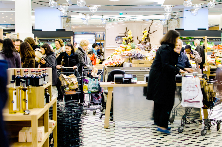 Maar je vindt hier vooral typisch Franse producten zoals foie gras en Fauchon chocolade. In de food hall is onder meer een wijn- oester- en kaasbar te vinden. Breng wel een dikke portemonnee mee, want boodschappen doen hier is niet goedkoop.