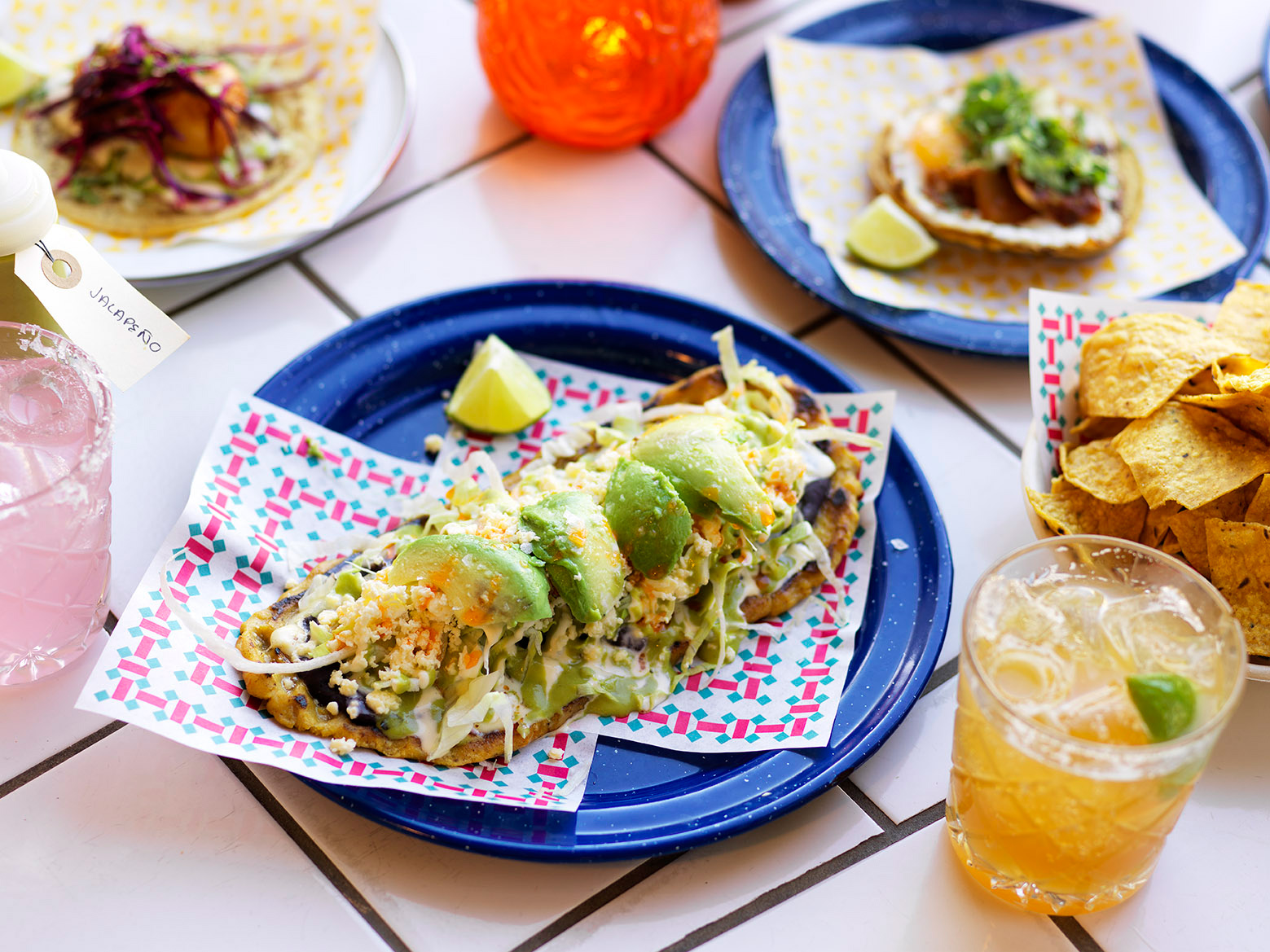 Bij de taquerias worden 11 verschillende taco’s geserveerd. Bovendien zijn er ontbijt-taco’s, lunch-taco’s en taco’s voor het diner. Taco’s all day dus! Je eet er bijvoorbeeld taco’s met krokante vishuid, salsa van kruisbes, ui, koriander en avocado. Of met een gebakken ei, tomatensalsa, chicharrón, ui en koriander. En wat dacht je van mini churros, die door drop-suiker zijn gerold en worden besprenkeld met gevriesdroogde zwarte bessen.
