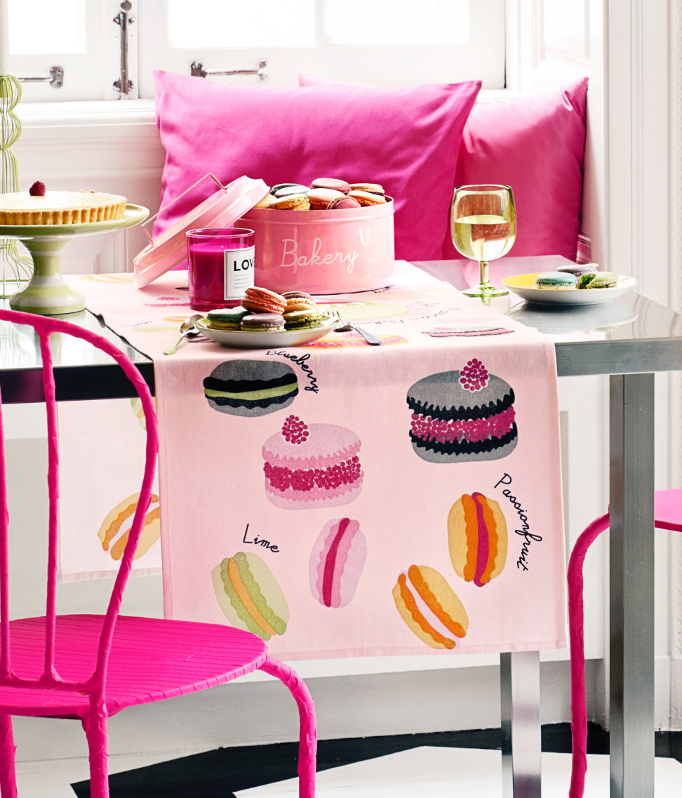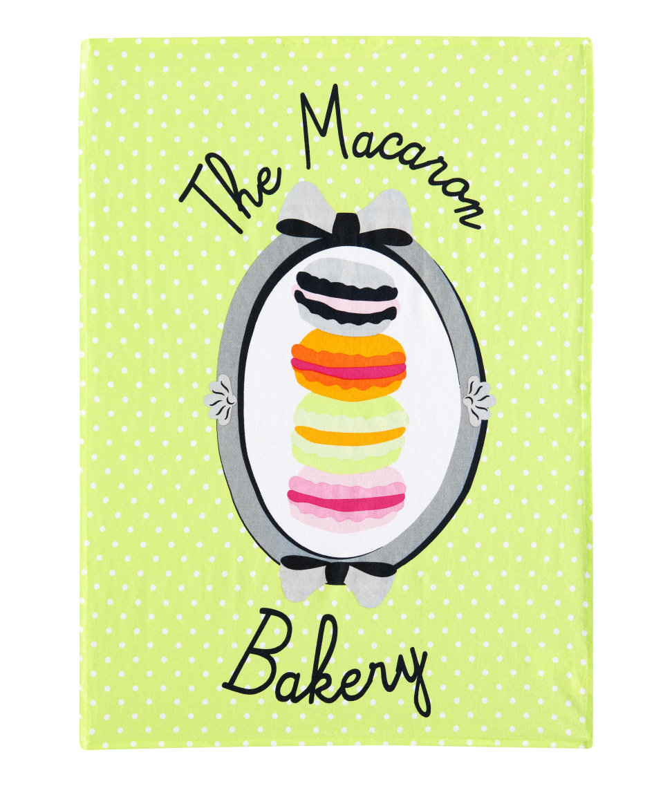 Van schort tot theedoek, de kleurrijke macarons vliegen je om de oren. Nu online te koop.