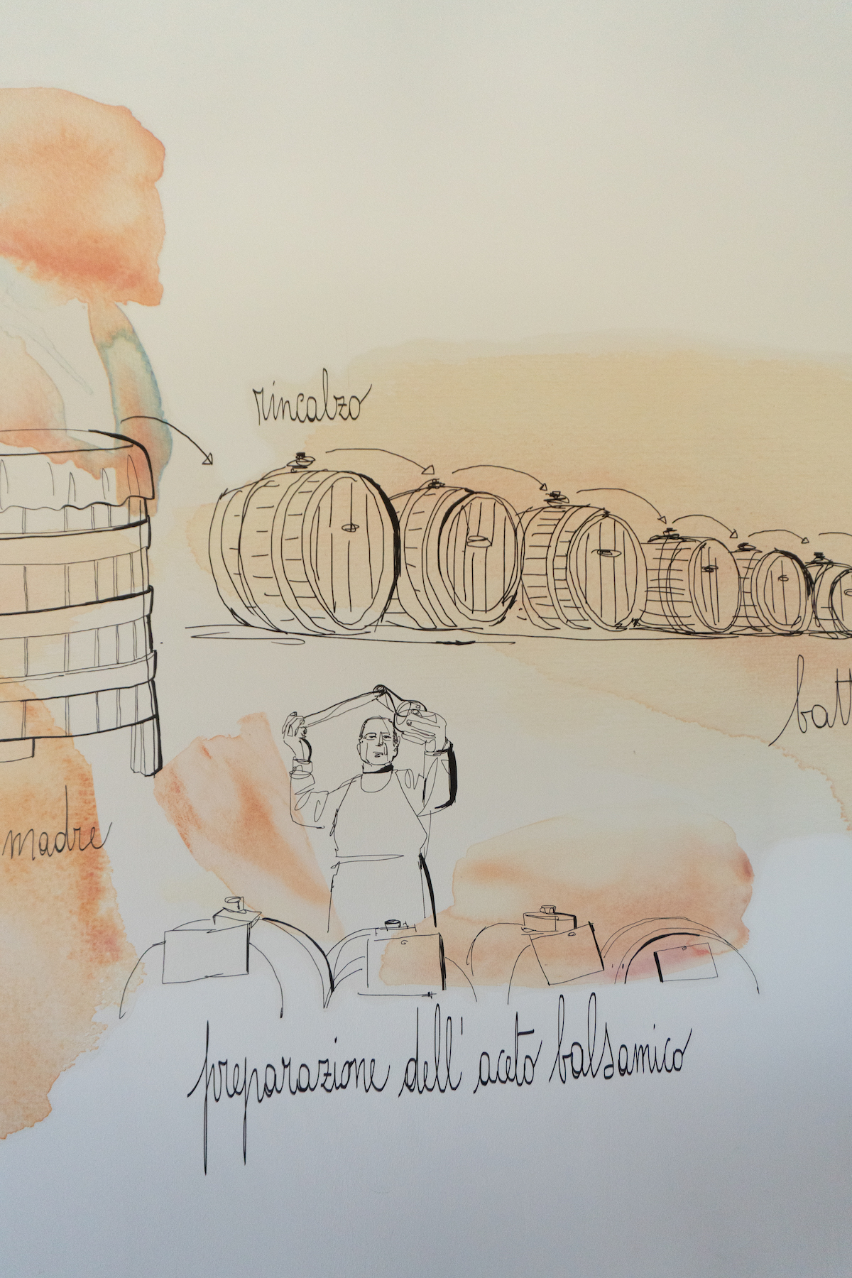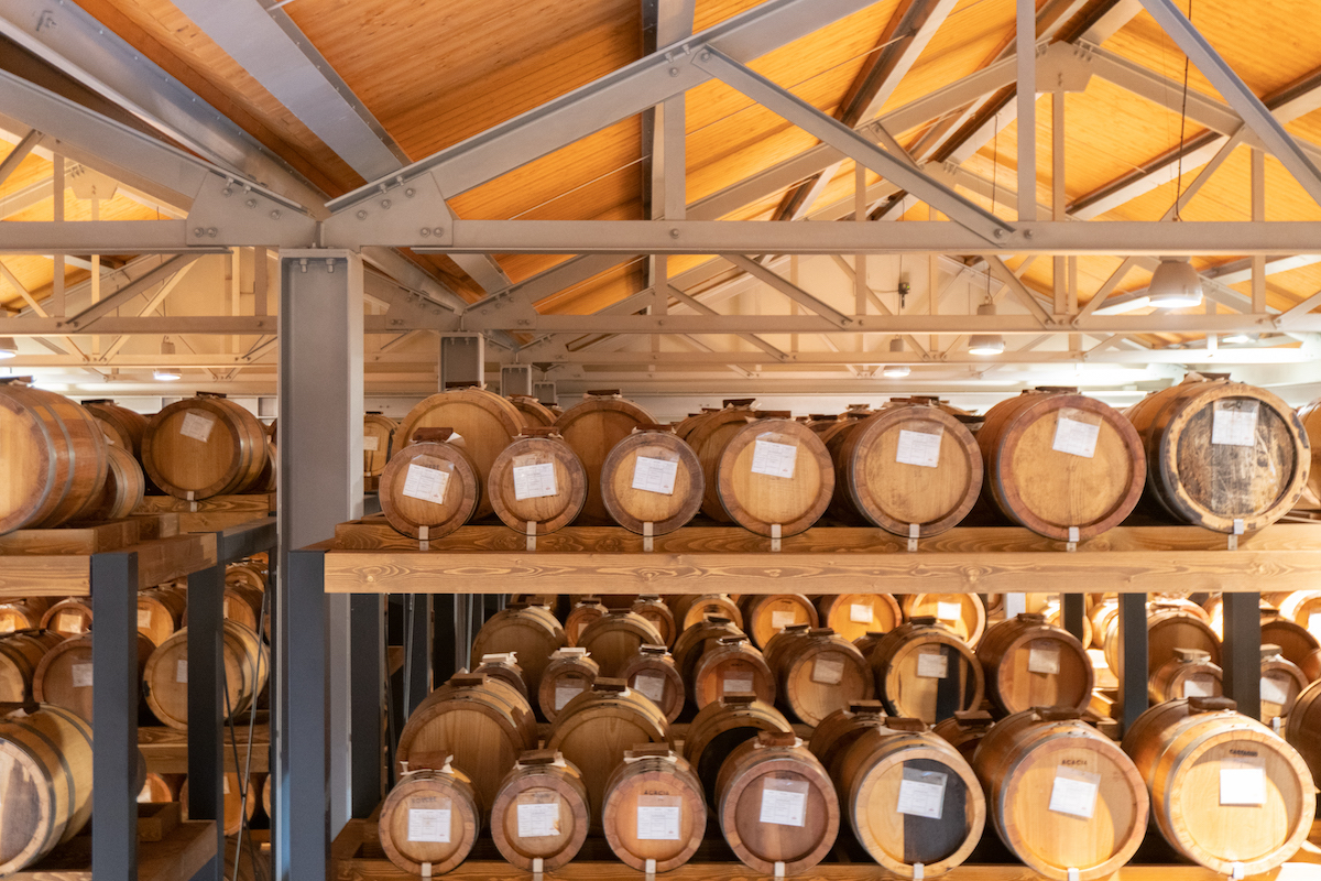De vaten hebben trouwens ook invloed op de smaak: net als bij wijn, worden er verschillende houtsoorten gebruikt om die smaak te beïnvloeden. Bij Mazzetti gebruiken ze vijf verschillende soorten hout: kastanjehout, kersenhout, eikenhout, acaciahout en moerbeihout.