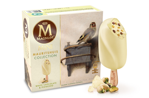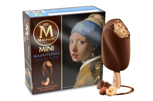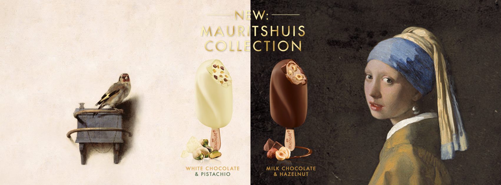 Vanaf nu is er de Magnum Mauritshuis Collection, bestaande uit twee limited edition ijsjes. De smaken zijn geïnspireerd op twee topstukken van het museum in Den Haag: Vermeers ‘Meisje met de parel’ en ‘Het puttertje’ van Fabritius.