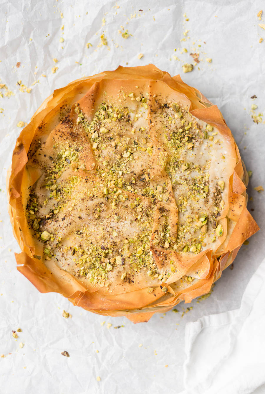 Dit heerlijke gerecht met accenten van ricotta en pistache is iets dat iedereen lekker vindt. Het vult goed, is vegetarisch en zal ongetwijfeld boven alle andere hoofdgerechten uitsteken omdat het er zó feestelijk uitziet.