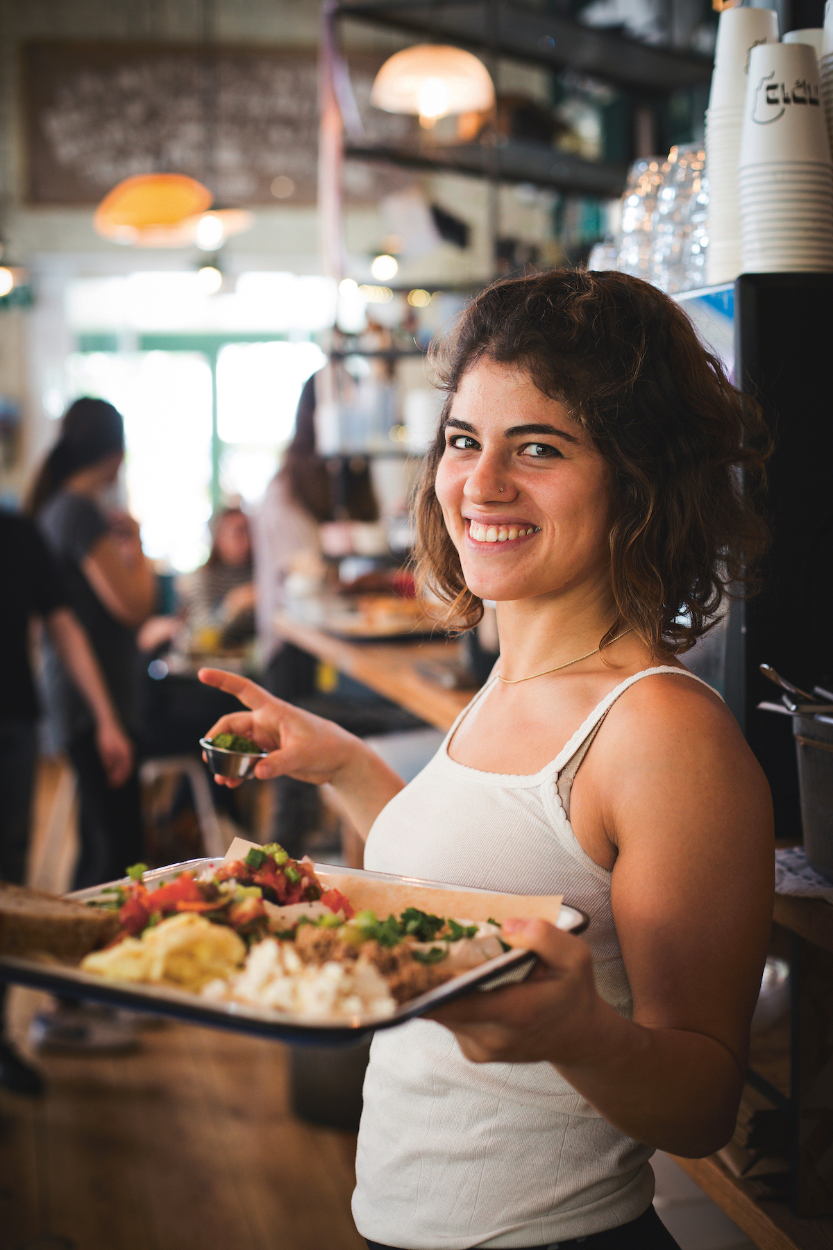 Neem plaats op de gezellige patio en probeer weerstand te bieden aan de vele gerechten op de kaart die opzichtig met je flirten. Wees gewaarschuwd, de porties zijn aanzienlijk. Als je je door te veel gerechten laat inpalmen dan komt je geplande lunch op losse schroeven te staan. Ben je in goed gezelschap, bestel dan sowieso de Bucke Tray en de Borekas Tray. Ook vegans zijn niet gevrijwaard van keuzestress, zo wordt de sjaksjoeka, die hier trouwens uit de oven komt, desgewenst bereid met tofoe in plaats van met ei. Naast uitstekende koffie, gaat Bucke prat op zijn versgeperste fruitsapjes.