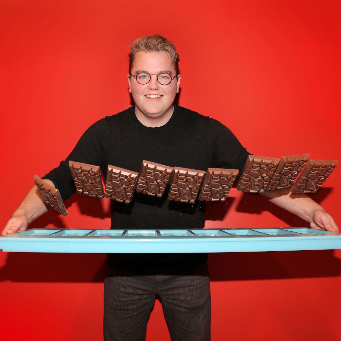 Daar komt ons product team met product marketeers bij kijken. Zij vragen bijvoorbeeld: wat wil je bereiken met deze reep? Is er een thema? Bijvoorbeeld een reep voor Valentijnsdag, een reep voor Culy of een nieuwe wintersmaak. Vanuit daar ga je brainstormen. Dan maak je een heleboel repen: de ene is wel lekker, de andere niet. Daar komen meestal twee of drie smaken uit die je gaat optimaliseren. Die testen we om de tafel in onze Choco Kitchen en daar kiezen we met het team de beste uit.