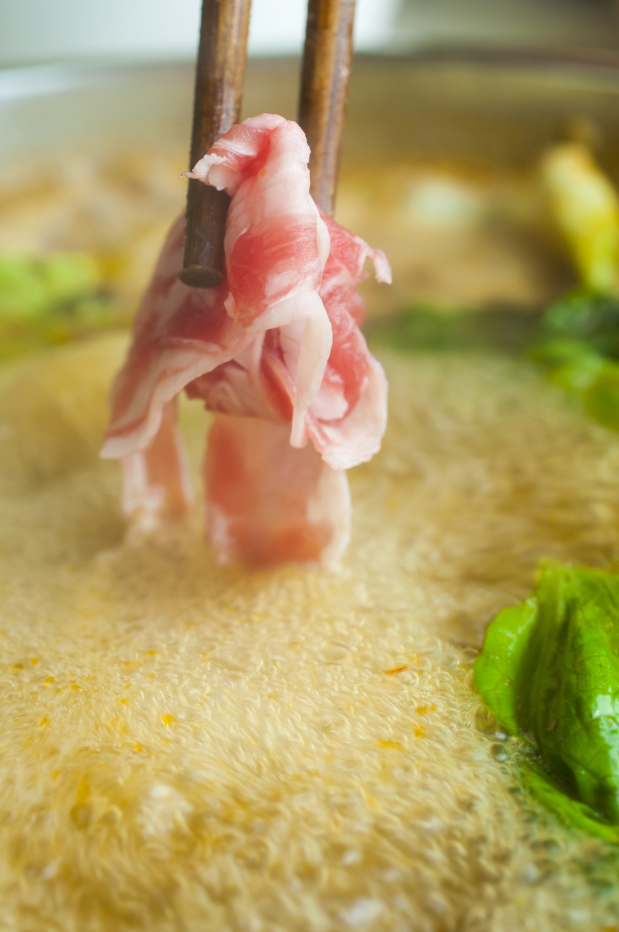 Nee, we hebben het niet over de Japanse all-you-can-eat keten, maar over het gerecht waarnaar de restaurants zijn vernoemd. Bij shabu shabu krijg je een pot of pan hete bouillon op tafel waarin je flinterdunne plakjes (wagyu) vlees, vis, groenten, noodles, dim sum en meer kort gaart.