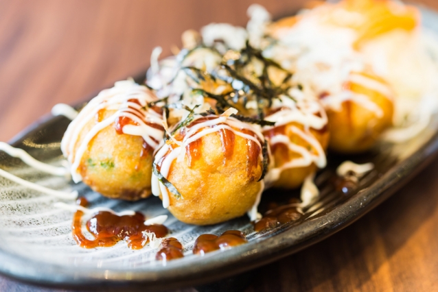 Deze hartige snack bestaat uit een soort gefrituurde octopusbolletjes, welke worden getopt met bonito flakes, gedroogd zeewier, mayonaise en tare (een soort teriyaki saus).
