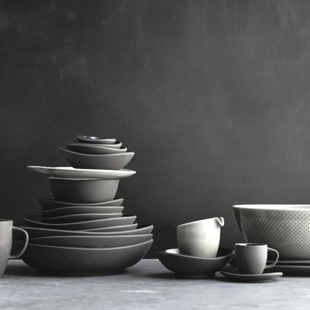 De collectie combineert matte aardtinten met fijn porselein en asymmetrische vormen wat zorgt voor een verrassend speels effect. De grote en kleine kommen, borden, schalen en kopjes zijn perfect voor het serveren van allerlei gerechten.