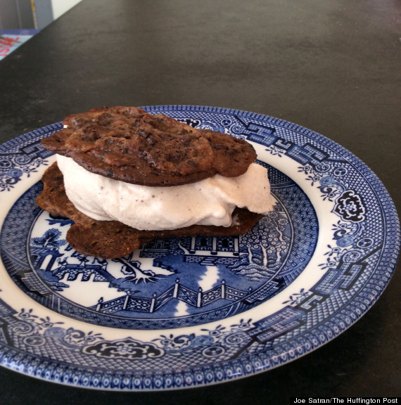 De stukjes deeg werden uit het gesmolten ijs gezeefd en werden er kleine hoopjes van gemaakt. Vervolgens konden ze gedurende een kwartier een op 180 graden voorverwarmde oven in. Na vijftien spannende minuten opende Satran huiverig de oven en een heerlijke koekjesgeur kwam hem tegemoet. “Ik was voor de verandering blij om een keer ongelijk te hebben”, aldus Joe.
