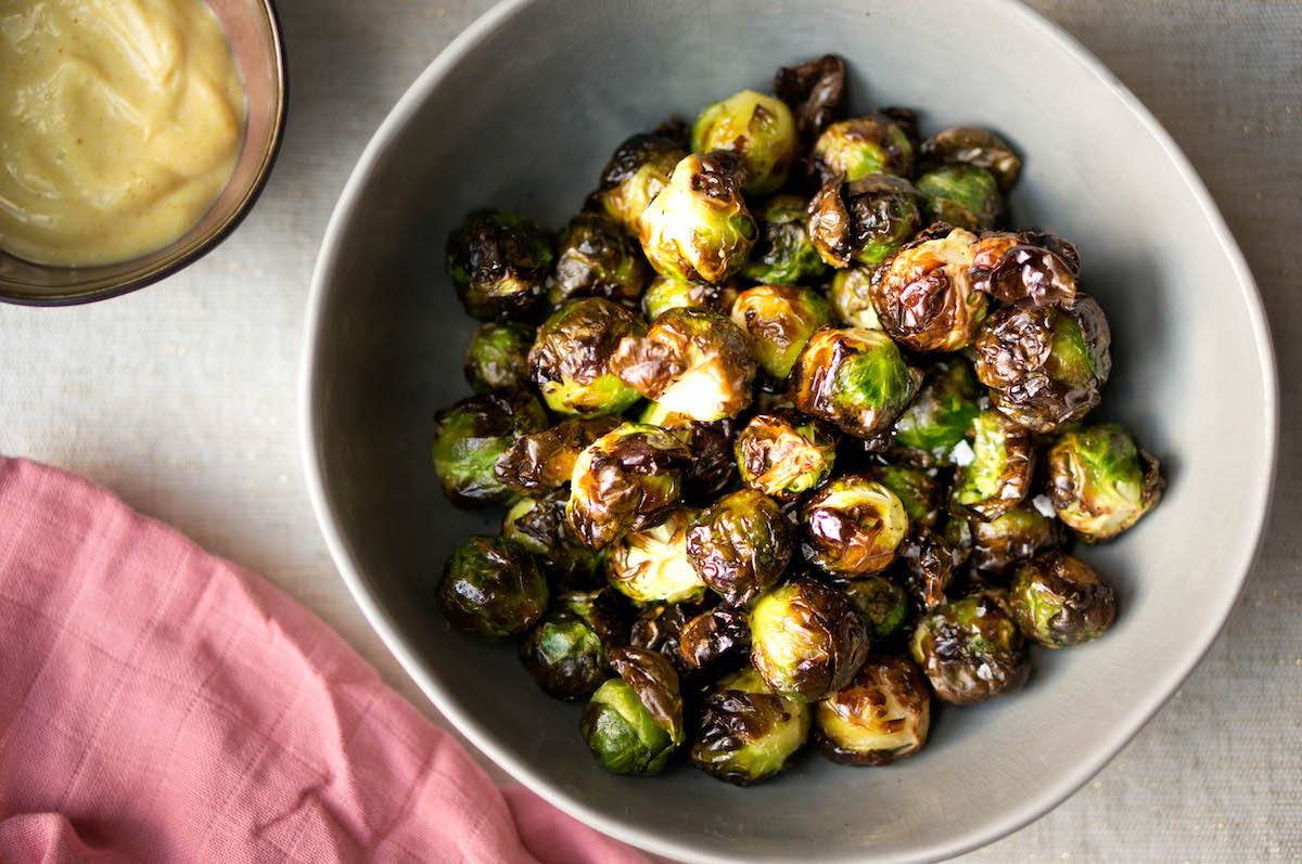 Naar recept: Gefrituurde spruitjes uit de airfryer met kerrie-mayonaise