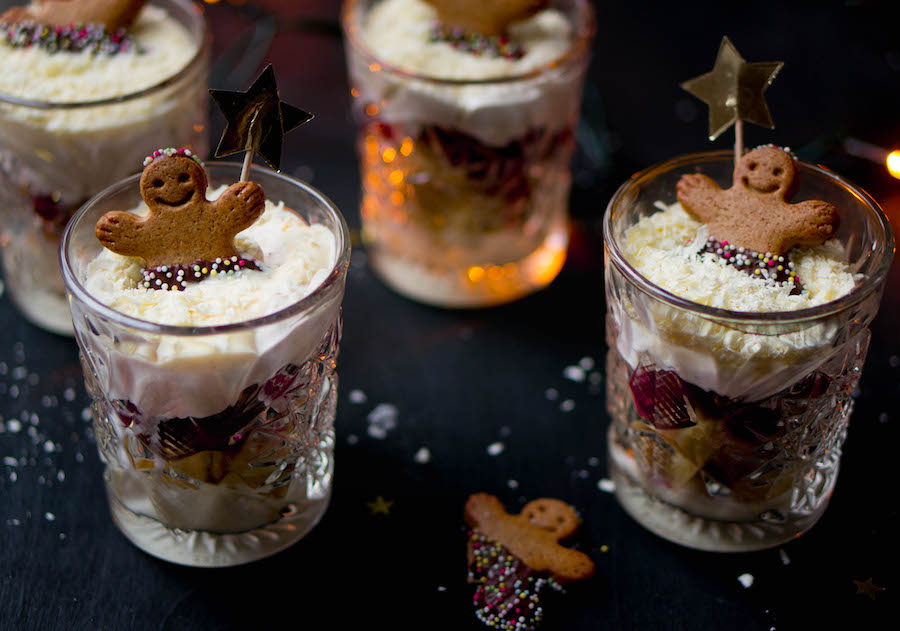 - Heb je geen trifleschaal? Dan kun je deze gingerbread trifle in glaasjes maken die je al in huis hebt. Ziet er ook nog eens hartstikke fancy uit. Het gingerbread mannetje bovenop maakt het plaatje af. Handigย โย Culy Homemade: gingerbread trifle in glaasjes