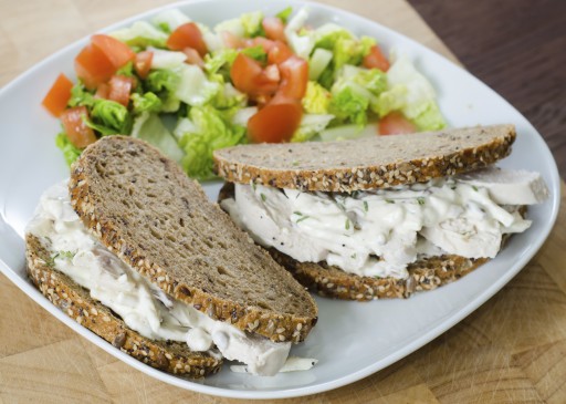 Als de kip is afgekoeld, snijd je deze in kleine blokjes en doe je deze in een kom. Voeg bij de kip wat zout en peper, paprikapoeder, plus één deel (Griekse) yoghurt en één deel mayonaise. Als je dit alles mengt heb je de perfecte basis voor een heerlijke kipsalade. Wil je het geheel wat gezonder, doe dan twee delen yoghurt en geen mayonaise.