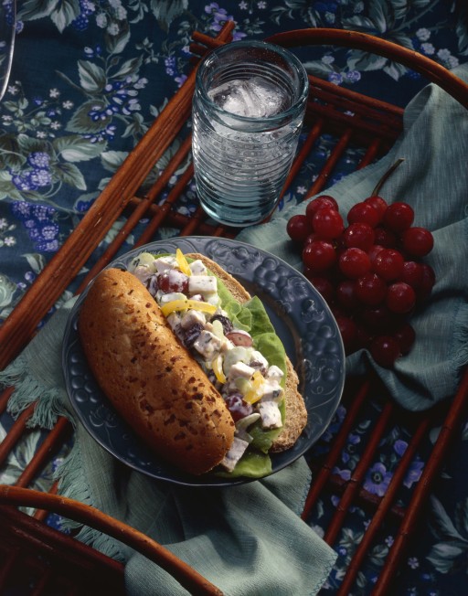 Kipkerriesalade. Voor deze variant voeg je zo’n drie theelepels kerriepoeder toe. Je kunt ‘m ook een beetje tropisch maken door er wat blokjes ananas aan toe te voegen.