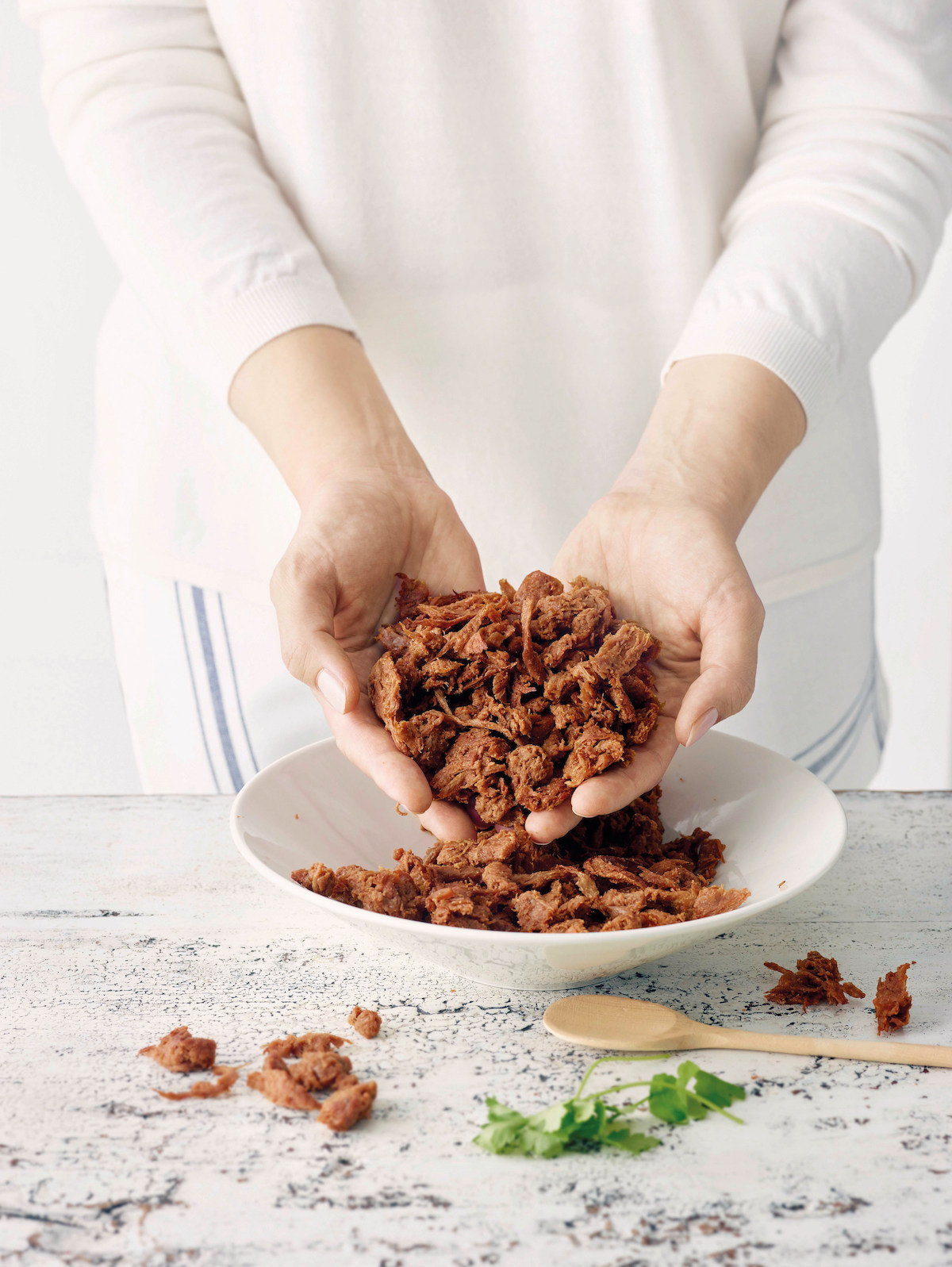 De textuur van de oats is geweldig: als extreem zacht gegaard rundvlees. Nóg zachter dan pulled jackfruit. Van zichzelf heeft het product amper smaak en dat is nog een verschil met jackfruit, dat toch een beetje zoet en fruitig smaakt. Met pulled oats hoef je niets te maskeren en kun je juist heel goed veel smaak toevoegen. Perfect als vleesvervanger in gerechten waar veel smaakmakers in gaan, zoals in de Aziatische en Mexicaanse keuken.