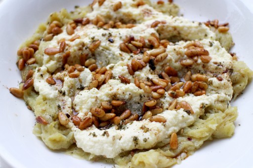 Ottolenghi’s baba ghanoush met courgette en Roquefort