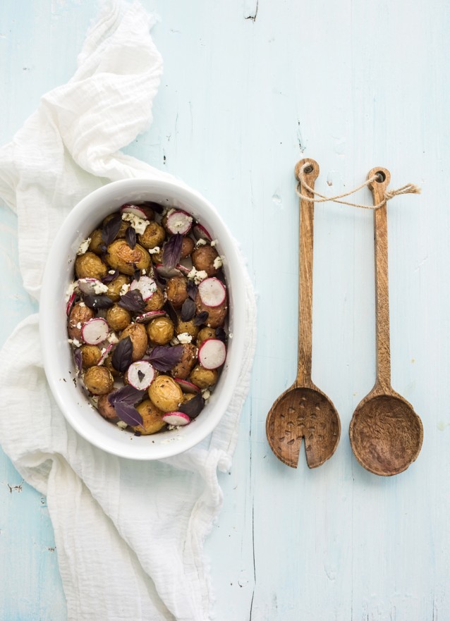 Haal de kontjes van de radijzen en besprenkel met olijfolie en zeezoutflakes. Rooster in een ovenschaal op 200-220 graden (afhankelijk van je oven) en serveer met verse kruiden.
