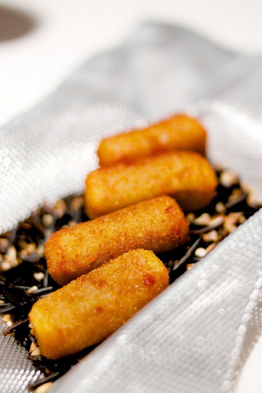 Zo’n beetje elk gerecht van elBulli was opvallend doordat het eten het geheugen van mensen aanspreekt (herkenbare vormen, kleuren en geuren), maar men juist verrast met nieuwe combinaties. Zo maakten ze een traditioneel Spaans kroketje, maar veranderden het compleet en verrasten de gasten ermee.