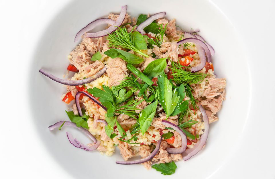 Een couscoussalade met tonijn en groene kruiden: klinkt héérlijk. Maak vooral een extra grote portie, want leftovers kun je natuurlijk mee naar je werk nemen. Deze salade is namelijk zowel warm als koud goddelijk.