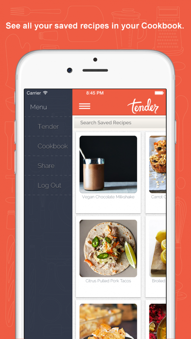 Geloof het of niet: Tender werkt hetzelfde als de populaire dating-app Tinder, maar in plaats van te swipen voor matches, ga je nu op zoek naar het perfecte gerecht.