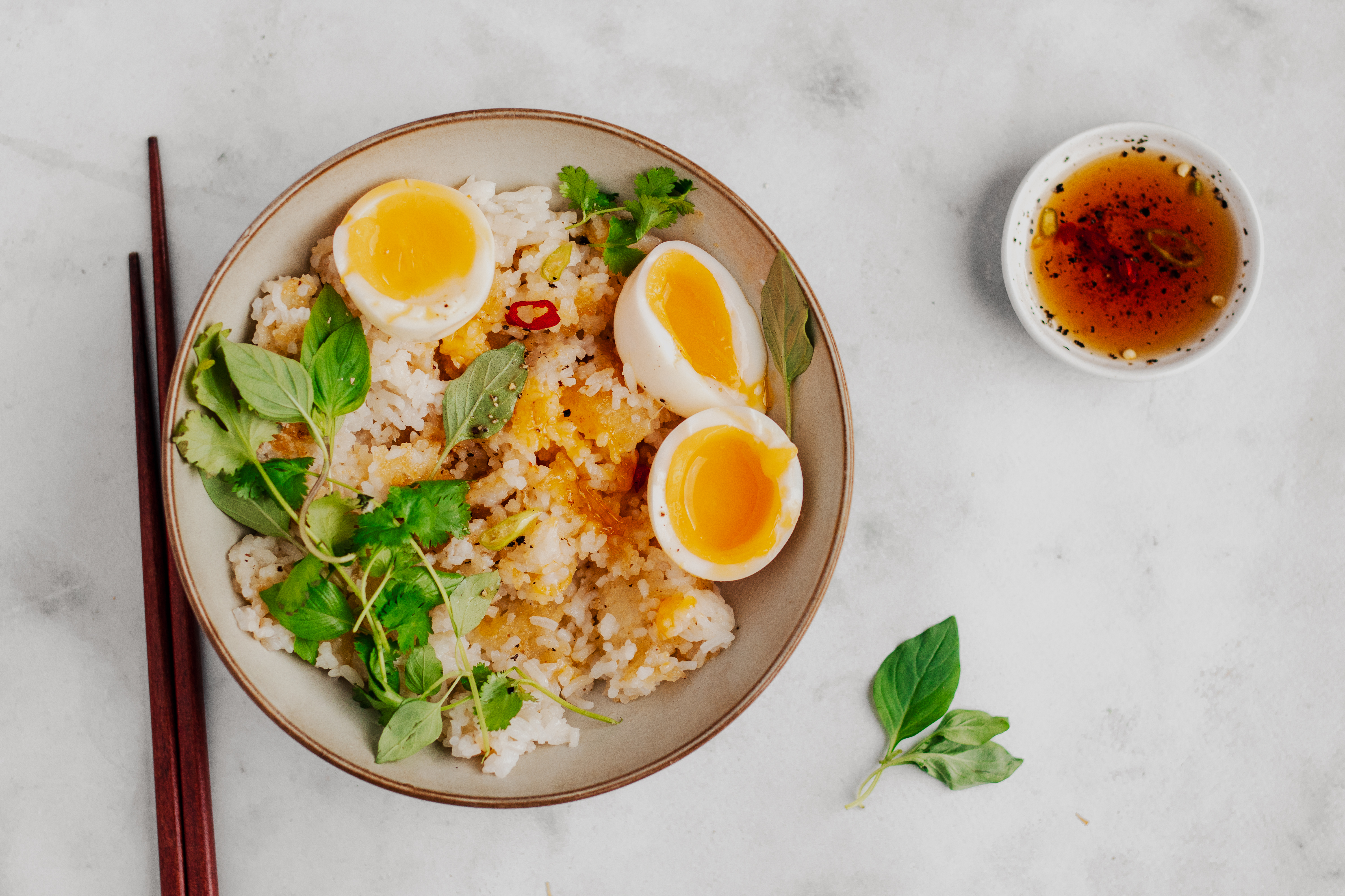 > Naar het recept: krokante rijst met ei en Vietnamese saus