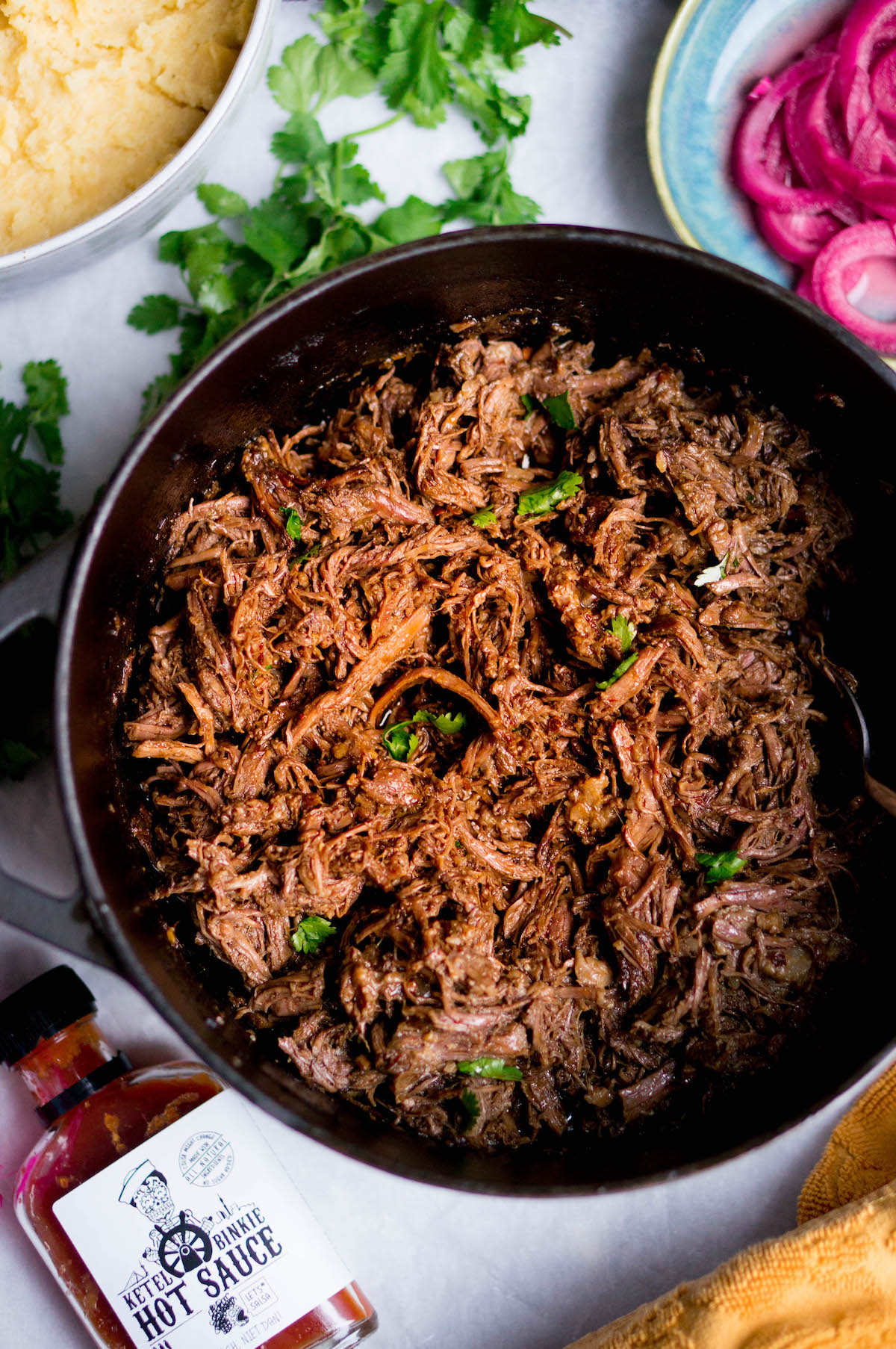 > Naar het recept: Mexicaans stoofvlees (barbacoa) met polenta