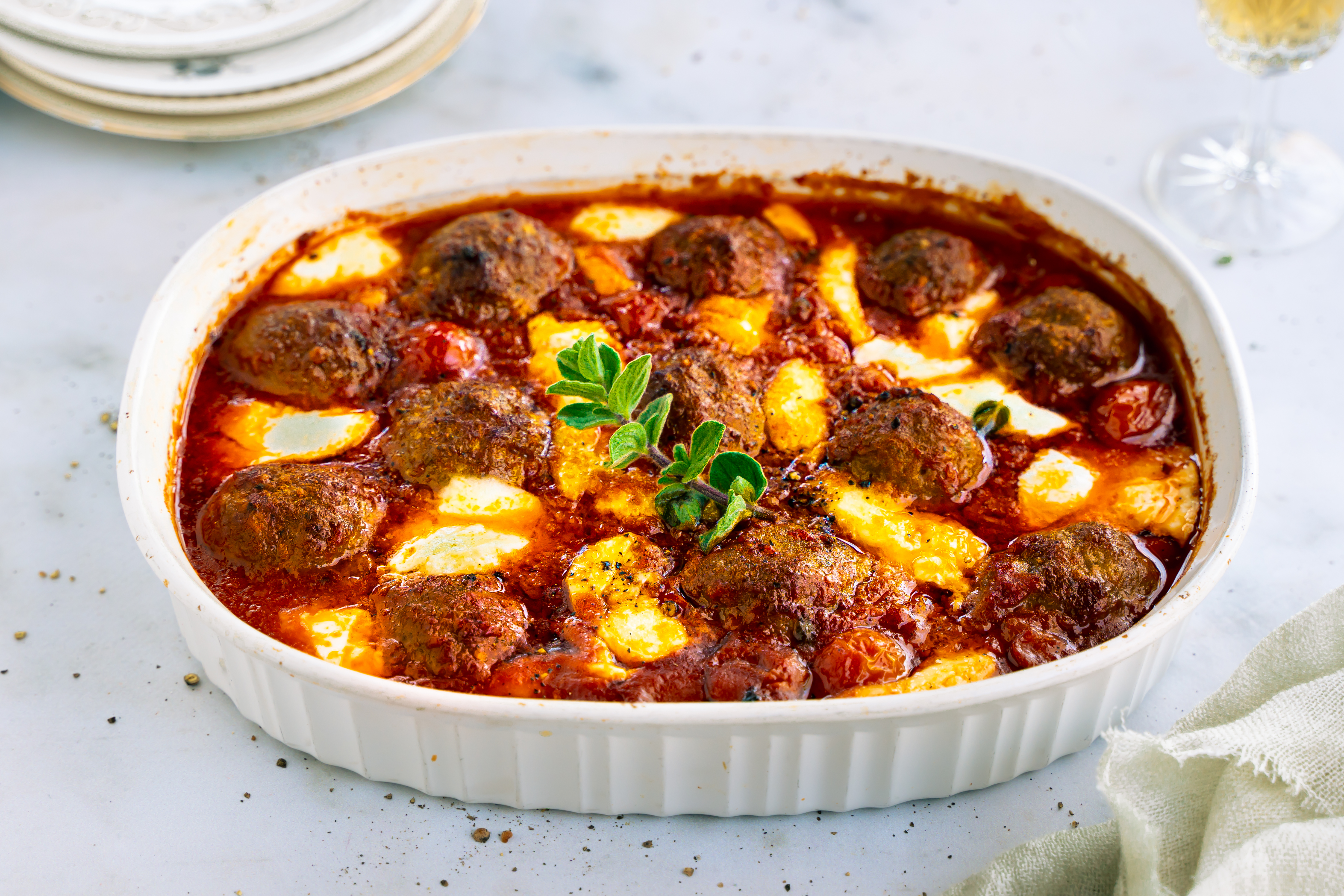 > Naar het recept: ovenschotel met gehaktballen in tomatensaus