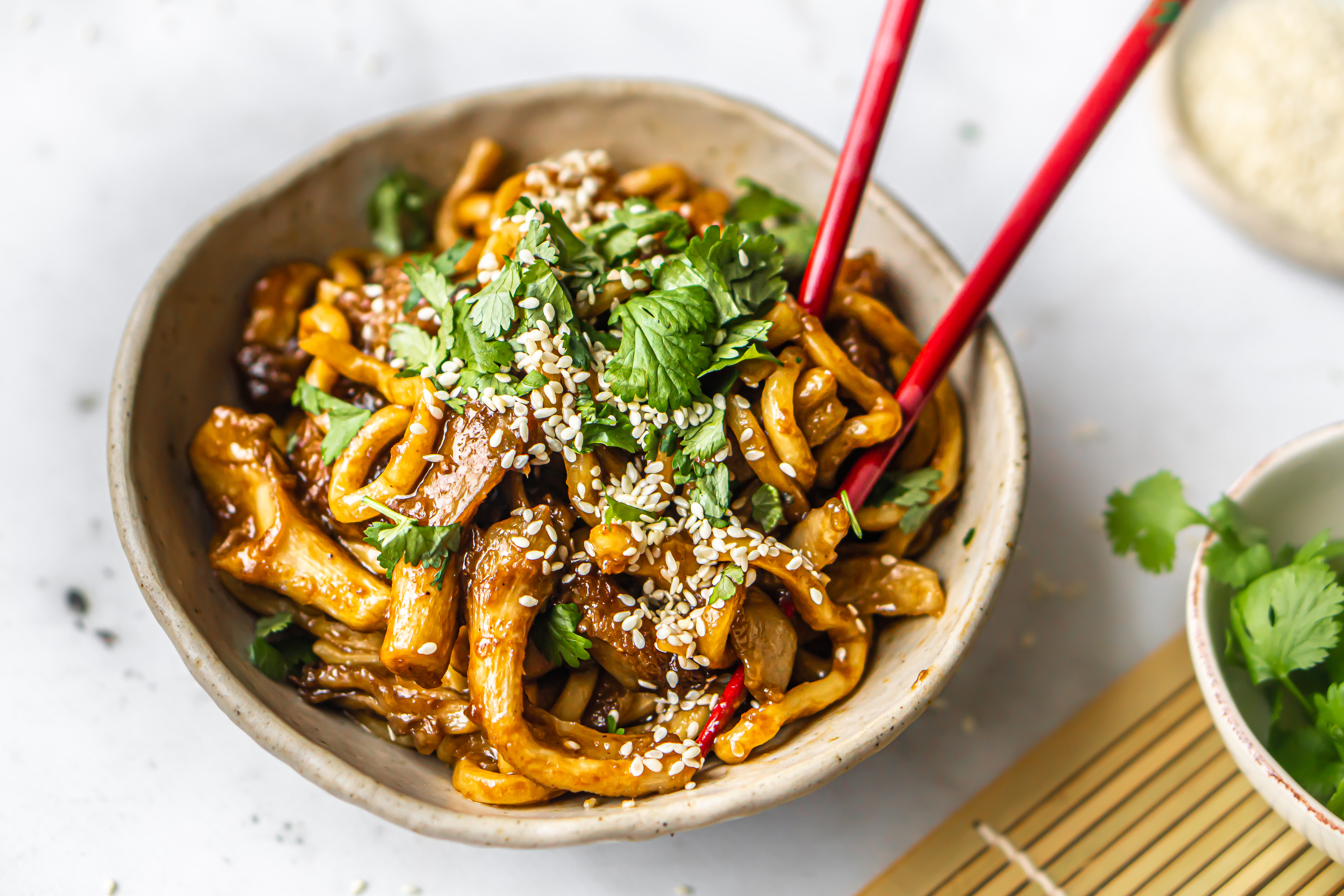 > Naar het recept: udon noedels met oesterzwammen (’n vega recept vol umami)