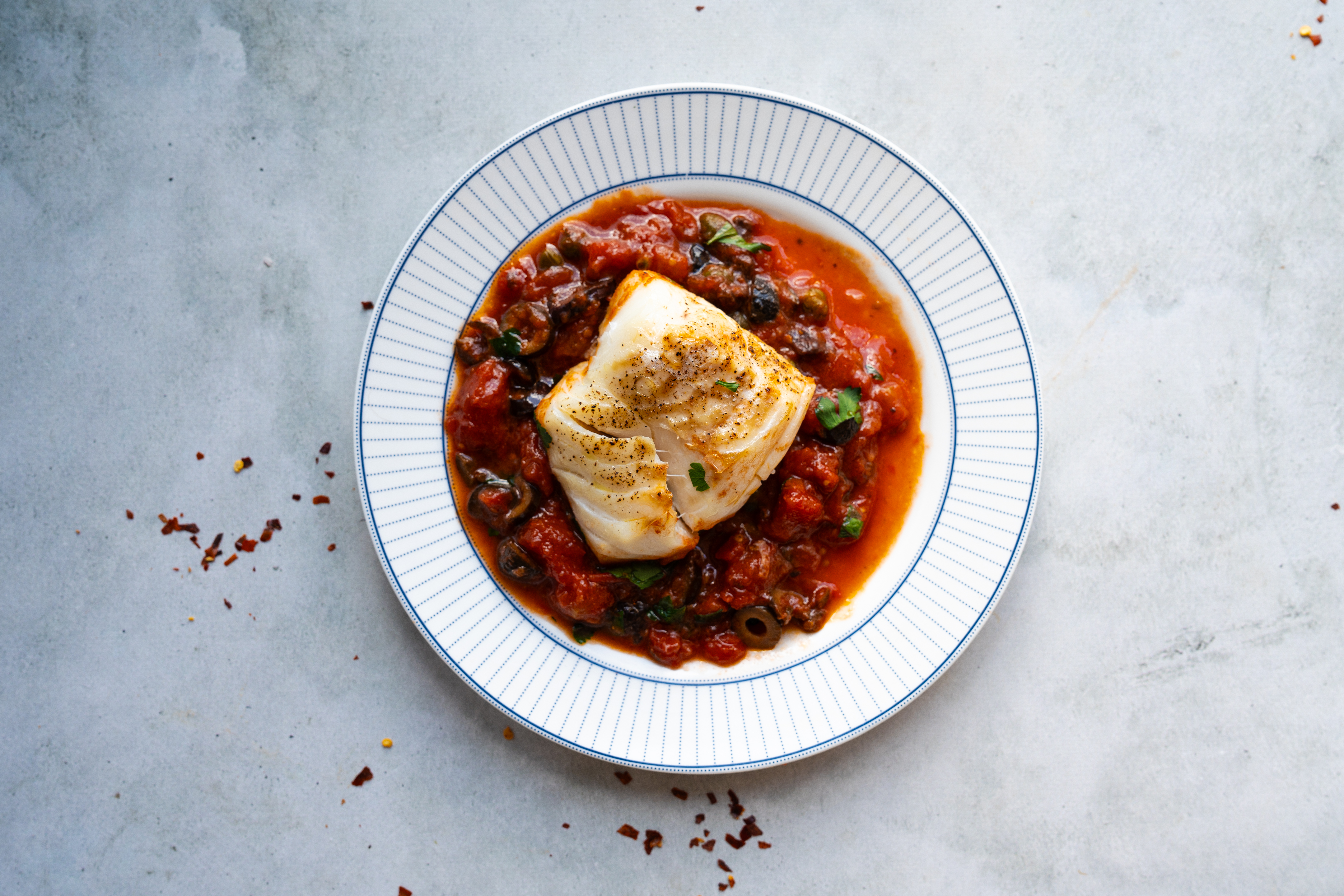 > Naar het recept: makkelijk en snel puttanesca-recept met kabeljauw uit de oven