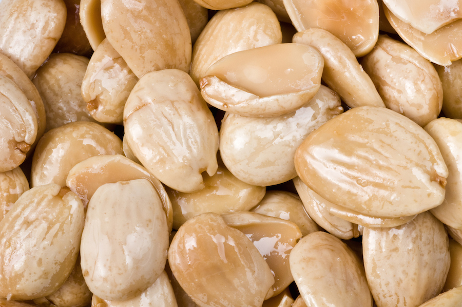 Misschien wist je het al, maar amandelen groeien aan de amandelboom. Het zijn de zaden van die boom, om precies te zijn. De harde schil van de steenvrucht wordt gekraakt, waarna je een amandel met een vliesje overhoudt. Door de amandelen te blancheren, verwijder je het vlies.