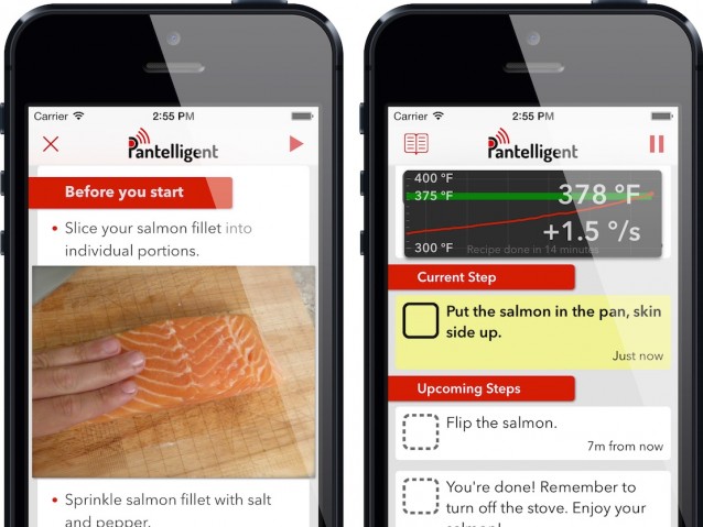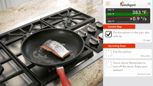 Pantelligent is een koekenpan die verbinding maakt met je smartphone via Bluetooth, en zo (onder andere) kan aangeven wanneer je eten perfect gegaard is.
