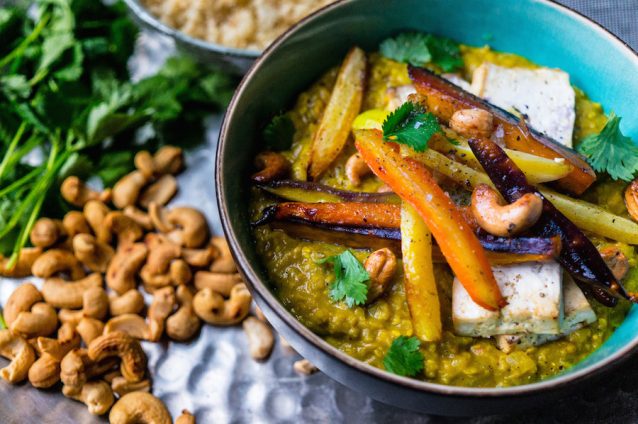 Een echt Indiaas gerecht is dhal, een linzenstoof boordevol smaak. Deze versie met kleurrijke wortels en tofu is niet moeilijk om te maken en gaat perfect samen met een stuk warm naanbrood.