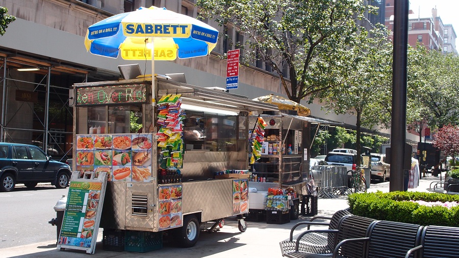 New York streetfood is al jaren populair. Tijdens de lunchpauze staan er op talloze straathoeken kleurrijke exemplaren geparkeerd.