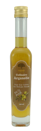 Culinaire arganolie is een biologische olie die gemaakt wordt van de pitten van de arganboom, die alleen in Marokko groeit. De bijzondere olie is met zijn nootachtige smaak niet alleen lekker, maar ook een gezond alternatief voor olijfolie. Arganolie zit boordevol vitamines en bestaat voor meer dan tachtig procent uit, goede, onverzadigde verzuren. Wetenschappelijke studies tonen aan dat één lepel arganolie per dag het cholesterol verlaagt.