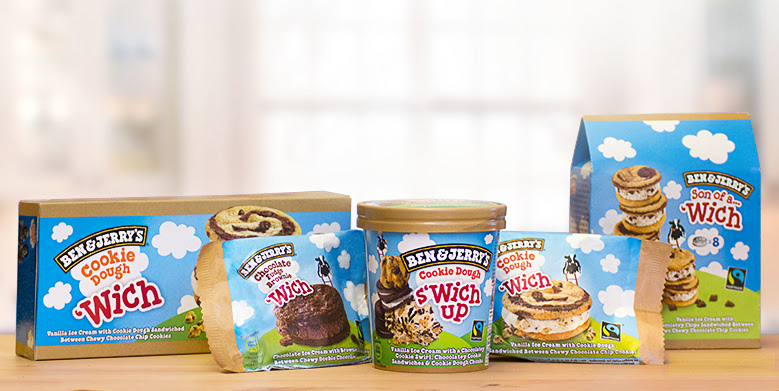 De Ben & Jerry’s ‘Wich familie ligt vanaf 14 maart in de grotere supermarkten.