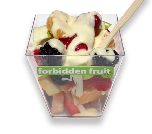 Forbidden Fruit NYC (aan 106 MacDougal Street, vlakbij Bleecker Street) is een kleine trendy winkel waar ze stukjes appel, aardbei, bes, sinaasappel, banaan en ananas verkopen, gedoopt in Belgische melkchocolade, pure chocolade of witte chocolade. Het geheel wordt extra lekker gemaakt met gekleurde hagelslag, kokos of walnoten. Je kunt dit gepimpte fruit los kopen, geserveerd in een bakje of geprikt aan een spies.