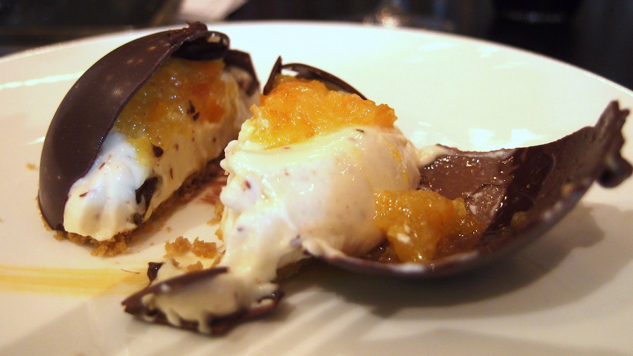 Om te bewijzen dat we ons wel degelijk begeven in ’s-Hertogenbosch, serveert Noble een Brabants dessert. Edwin Kats heeft zich laten inspireren door de Bossche bol en daar een Nobol (leuk woordgrapje) van gemaakt. Een echte klassieker in smaak (chocola, biscuit en sinaasappel). En net als het origineel ligt deze lekker zwaar op de maag. Het maakt een mooie afsluiter van een menu wat het best te omschrijven valt als ‘east meets Den Bosch’.