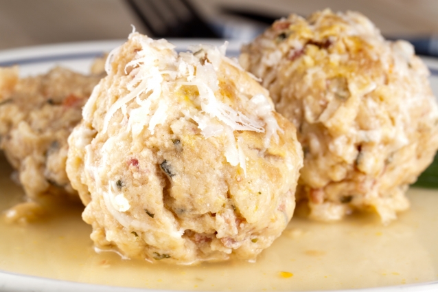 De brooddumplings worden vaak geserveerd in een vlezige bouillon. Lees hier hoe je zelf canederli maakt.