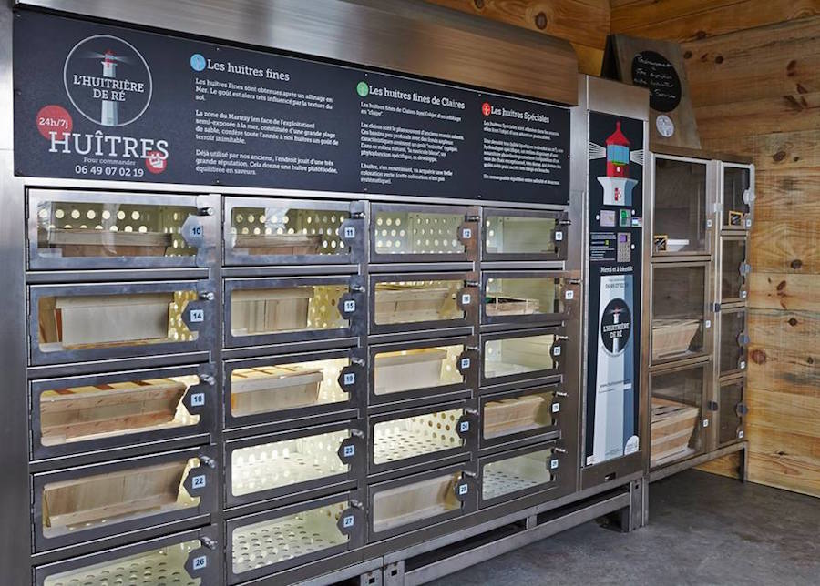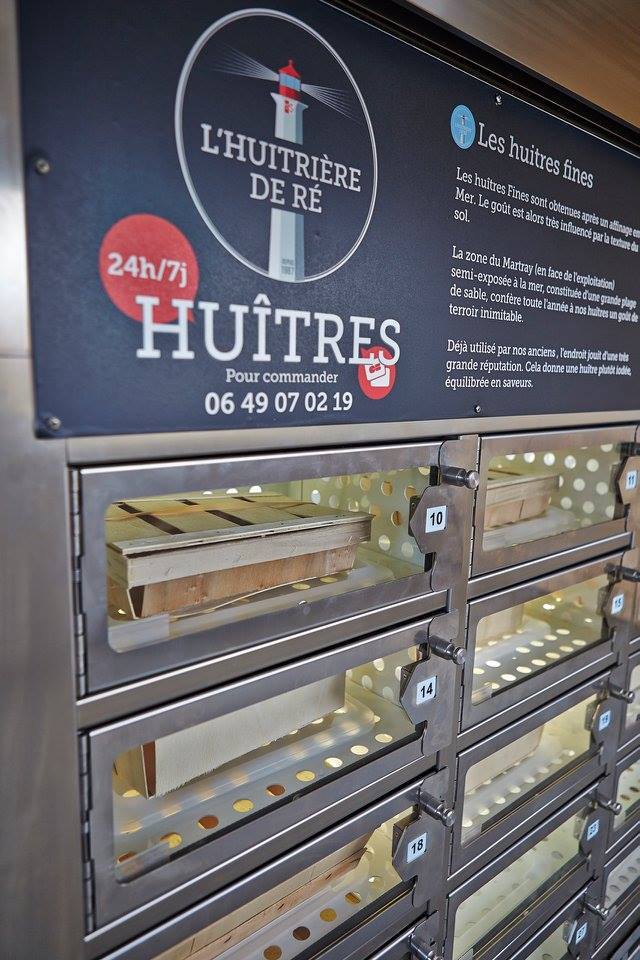 De oester automaat staat voor de deur bij L’Huitrière de Ré: een kweker en distributeur van verse oesters, die ook een eigen winkel runt. De winkel zit in Ars-en-Ré, gelegen op Île de Ré: een eilandje in het westen van Frankrijk.