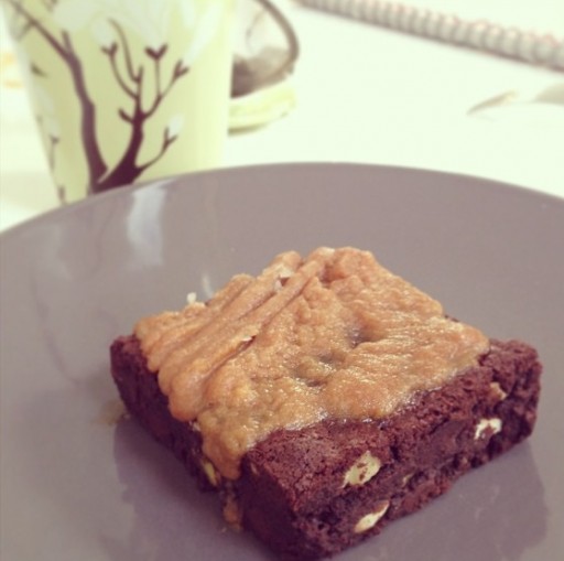 – Bedek de reeds gebakken brownies met een laag salted caramel