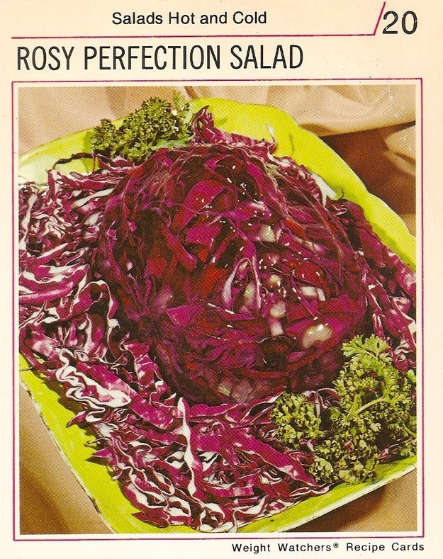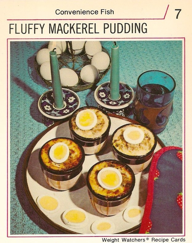 Ze probeerde alle bizarre recepten uit – zelfs de asperges in aspic, een klassieker uit de seventies – en maakte er een kookboek van: The Amazing Mackerel Pudding Plan: Classic Diet Recipe Cards from the 1970s.