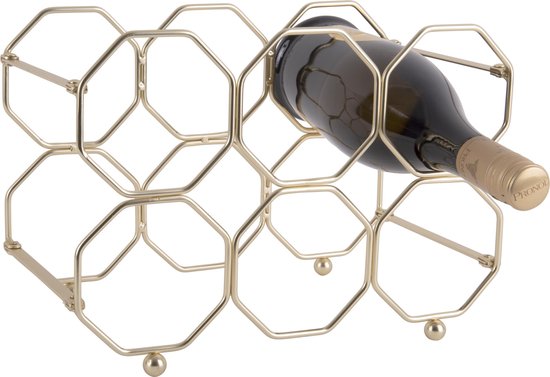 Een honinggoud wijnrekje dat goed is voor 6 flessen wijn. Dit wijnrek is ook verkrijgbaar in de kleuren zwart en grijs en past dus binnen ieder interieur.