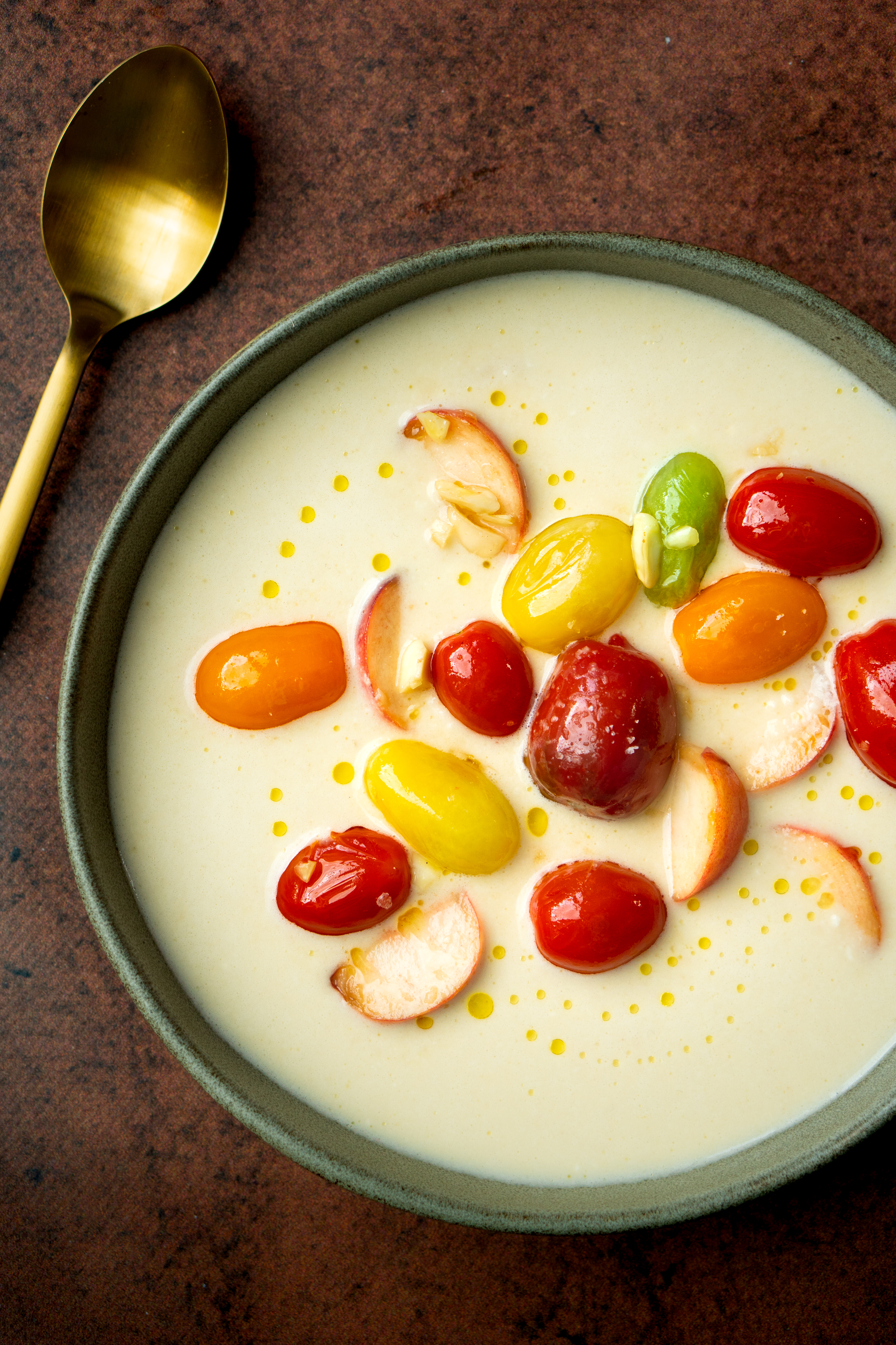 10. Romige ajo blanco met gebakken tomaat en perzik