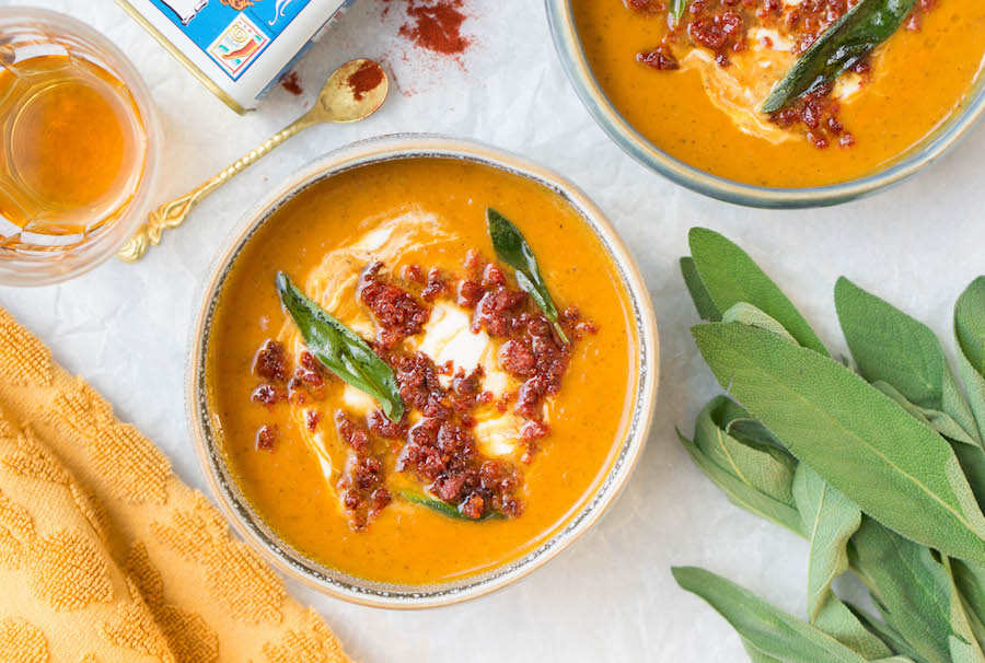 > Naar het recept: soep van zoete aardappel met sherry en chorizo