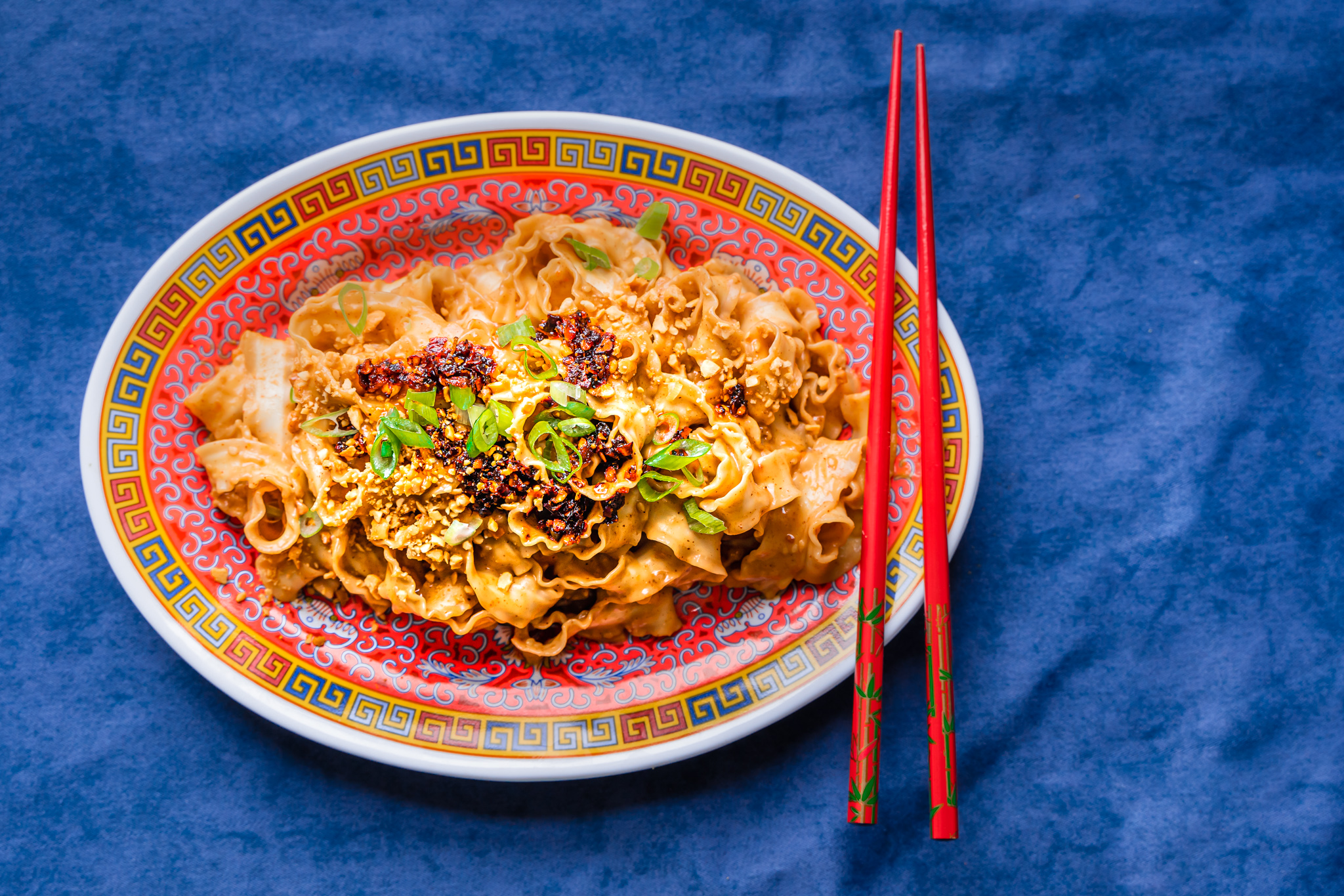 > Naar het recept: pindakaasnoodles met bosui en chili-olie