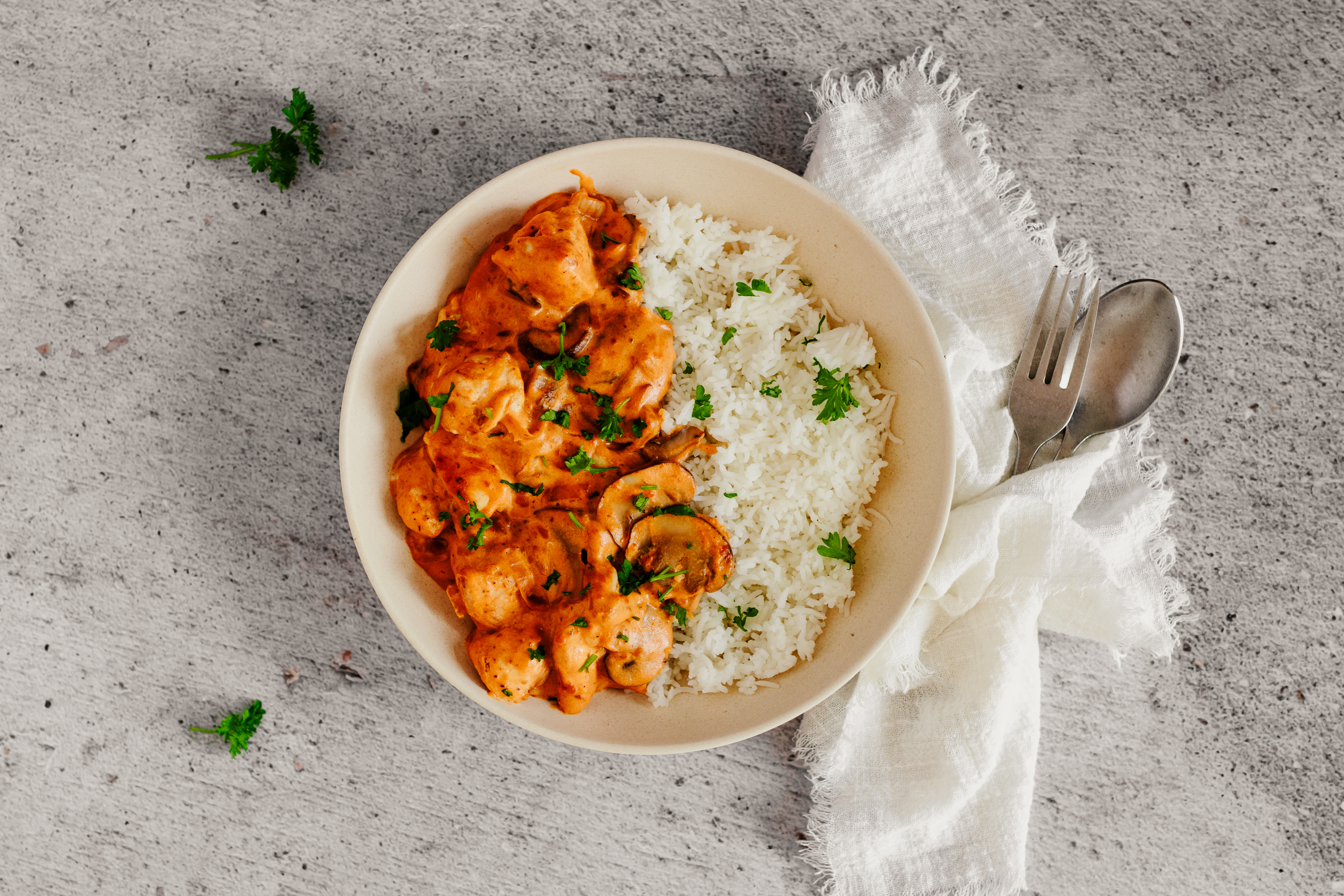 Kip Stroganoff is een fantastisch gerecht van kip met champignons in een saus van room en witte wijn. Ofwel, een avondmaaltijd vol comfort die toch heel verfijnd aandoet.