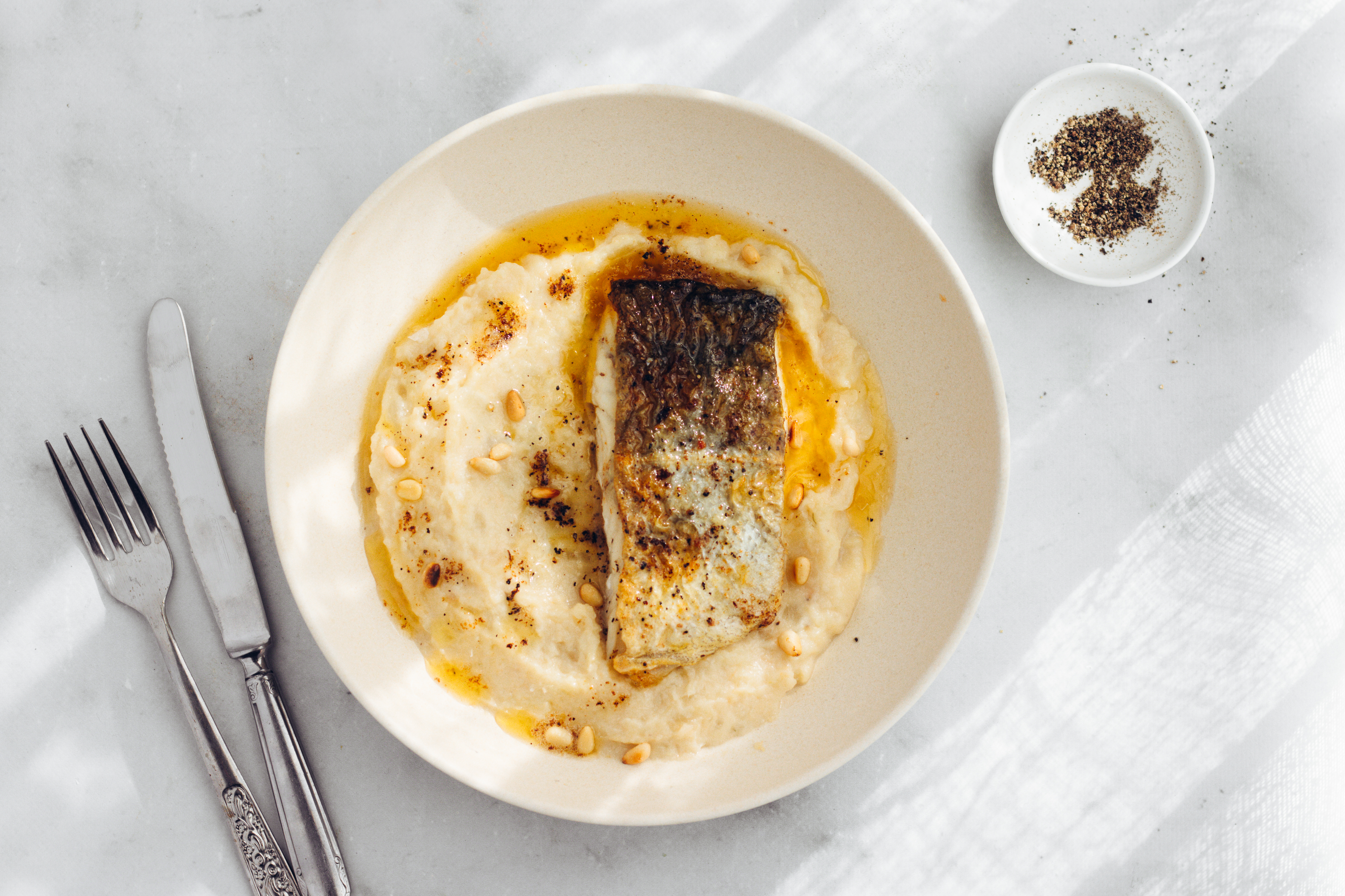 17. Schorsenerenpuree met gebakken witvis en een citroen-beurre noisette