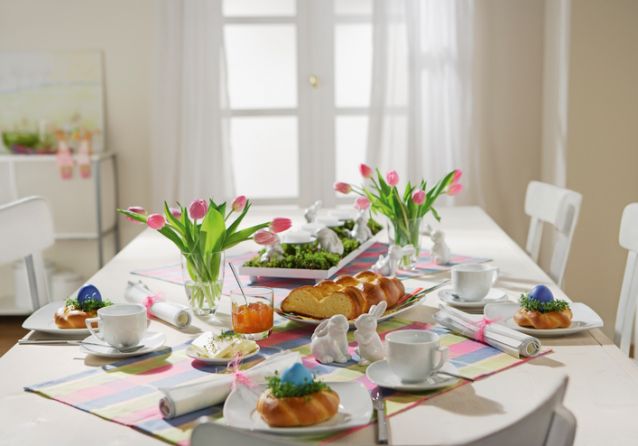 Kleed je tafel gezellig, fris en kleurrijk aan voor het Paasontbijt. Helemaal slim: doe het al de avond van tevoren, dan hoef je op Paasochtend zelf niet meer de servetten op te snorren en de glazen schoon te maken…